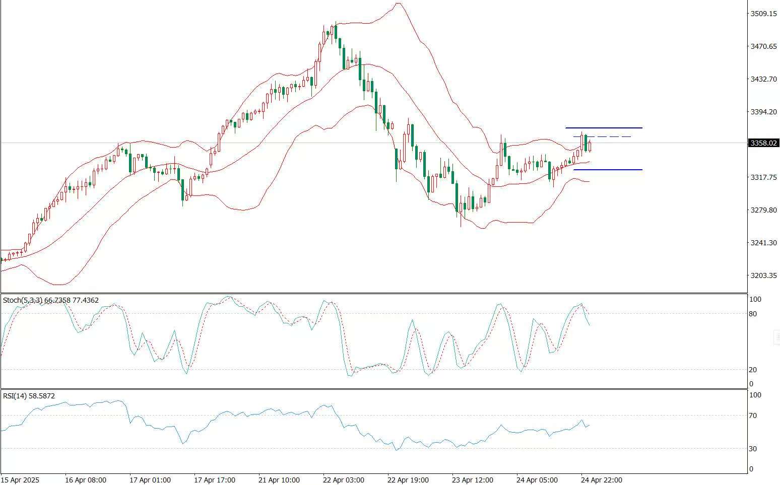 没有不成功的投资,只有不成功的操作。对现货原油黄金白银等贵金属投资有兴趣却无从下手或者已经在接触却并不理想的朋友,欢迎关注"唐婉欣"工肿号获得最新资讯,获取每日行情走势分析,交易策略指导;如果有套单锁单的朋友,请及时联系本人薇欣:twq17168,为你解单解锁。 4月25日黄金市场分析: 现货黄金昨日呈现反弹走势,技术指标与基本面因素共同作用,促使市场多头情绪有所回暖。在消化关税缓和消息后,美元走弱及低位买盘推动金价回升,市场关注焦点仍集中在国际贸易局势的最新进展。 当前金价已重新站上3300美元关键位,这一走势主要受到两方面因素影响:一是美国财长斯科特·贝森特关于国际贸易关系的表态;二是市