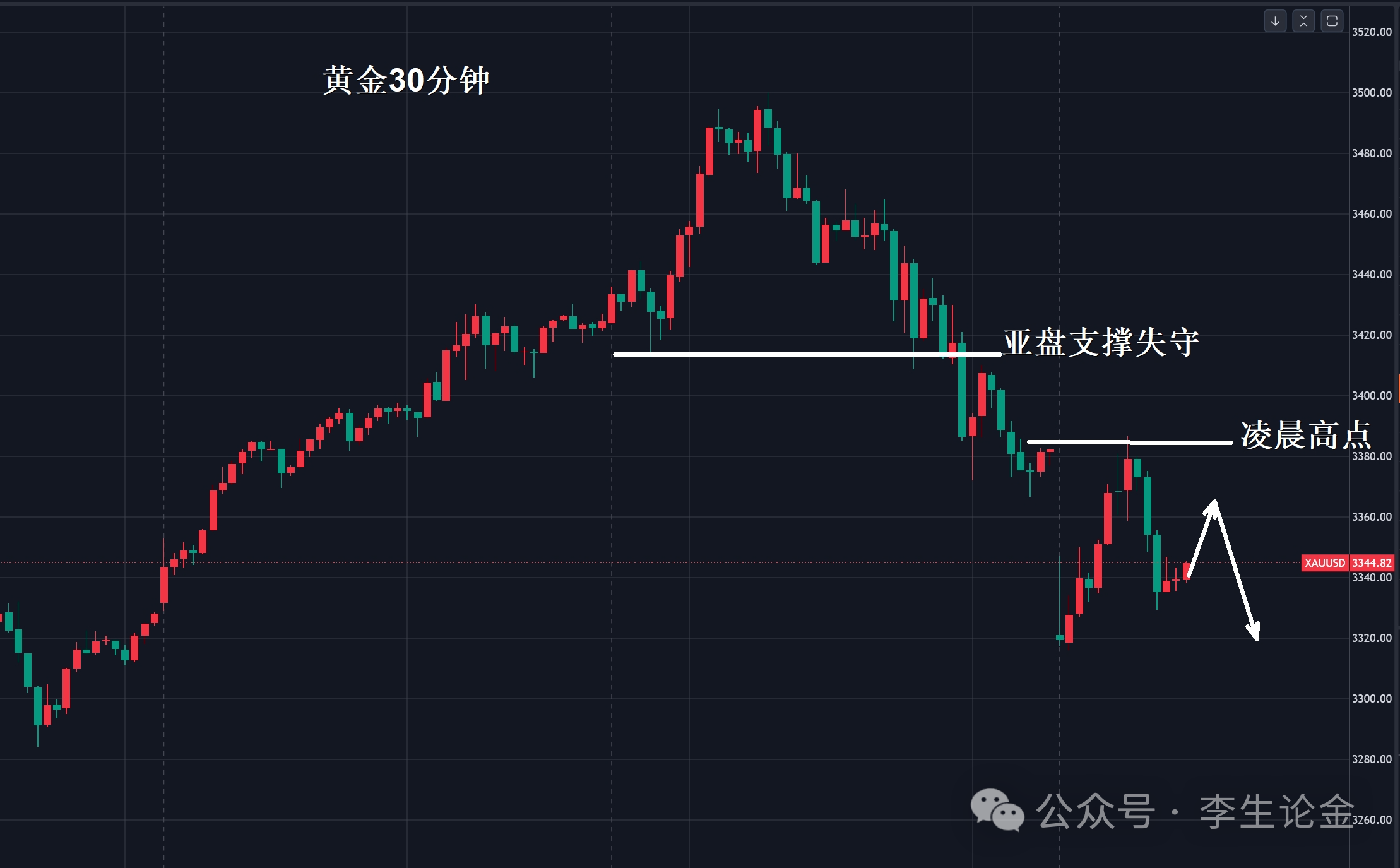 高晓峰:4.23震荡上升新节奏:急跌后这样布局胜率翻倍 美国总统特朗普周二(4月22日)突然转变口风,在公开场合表示无意罢免美联储主席鲍威尔,这番表态犹如给金融市场注入"强心剂",美股期货应声跳涨近2%。这场持续数月的"美联储主席保卫战"似乎迎来重要转折点。 昨日金价冲高3500后快速回落至今日3315低点,短期回调力度较强。此轮下跌主要消化前期连阳涨幅,属正常技术性修正,并非趋势反转信号。 今日关注关键分水岭:若反弹能站稳3330并收复昨日缺口3390附近,则确认震荡上行格局延续。当前市场处于"急跌缓涨"模式,大跌后多头动能需重组,不宜盲目追高。总体来看,中长期上升趋势未破坏,短期震荡是为