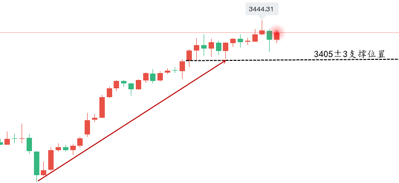 4.22黄金行情走势分析:黄金昨日呈现强势上涨行情,最高触及3430附近,单日涨幅达100美金。从技术面来看,当前黄金市场仍处于明显的多头趋势中。 日线级别分析:均线系统保持多头排列,显示上涨动能强劲。5日均线3355构成重要支撑位。今日开盘后金价创出3444新高后回落至3412附近,短期可能进入震荡整理阶段。上方关键阻力位于3457-3460区域,若有效突破将打开通往3500关口的空间。 四小时图分析:自2956低点启动的上涨行情中,MA5均线持续发挥关键支撑作用。上周五短暂跌破后,本周一迅速收复失地,确认了该均线的技术意义。目前MA5均线仍是判断短期趋势的重要依据,价格在其上方运行则维持