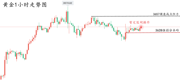 何小冰:金价在强势和修正中挣扎,3640分界定节奏 金价再创新的高点后,出现下跌幅度近55美元,宣告进入调整修正的阶段 昨日周三止跌3620后反弹,反弹幅度比较大,去到3657.5才最终结束,美盘反复围绕3640-3660区间来回跑,直至今日周四早盘,价格仍是如此的走法 但是,有一点需要注意,若是修正完成了,那么今日周四早盘便需要依托3640直接冲刺,不说破不破高的问题,就说找寻高点3675区域的动作 显然,价格并没有这么走,冲高受阻3649后,承压下跌找寻3622区域,又是涨多少,跌回多少的走法,将行情拉回到大区间扫荡的过程中 并且,价格跌回了30分钟图的双线区间内,跌回了四小时生命线的下
