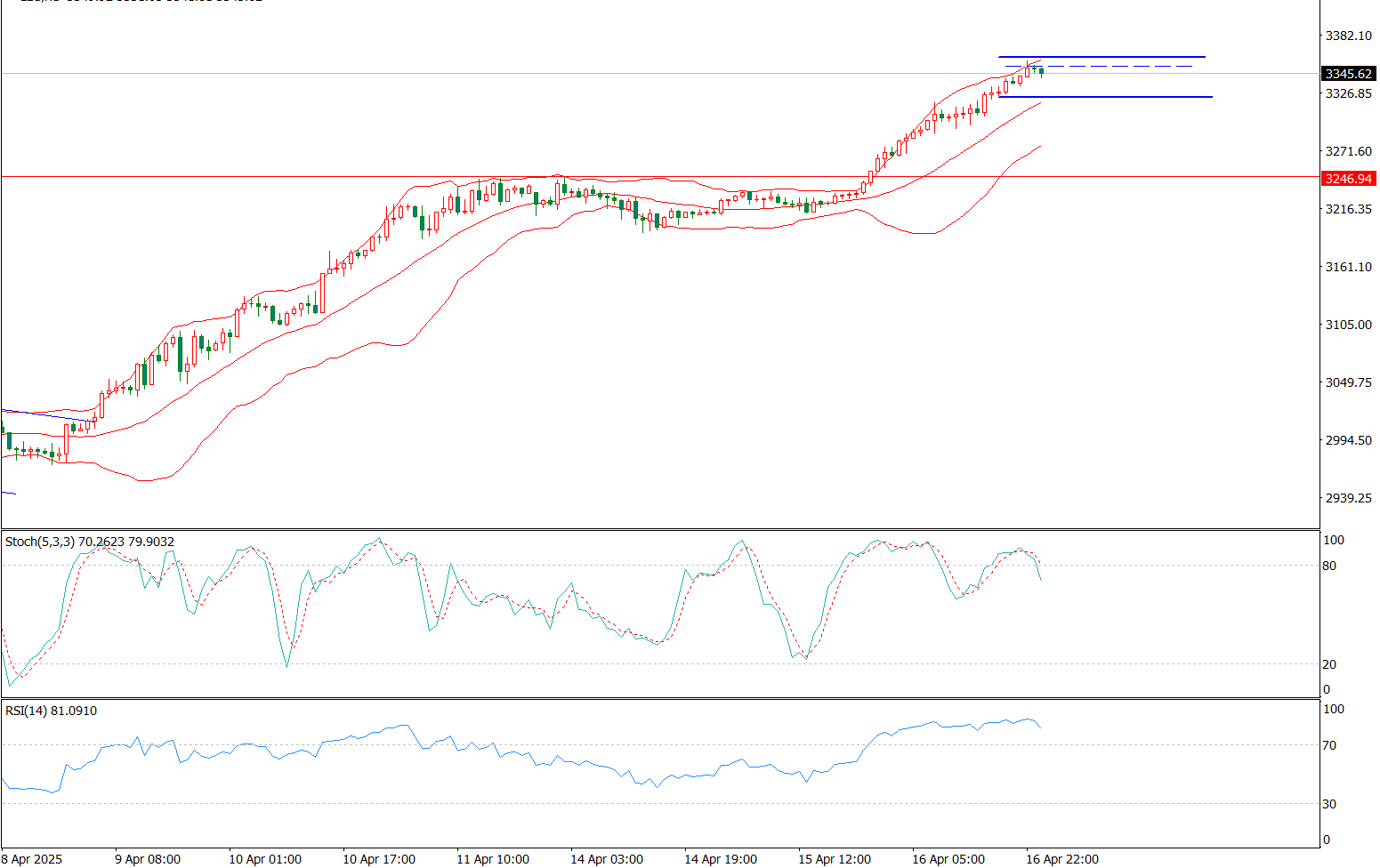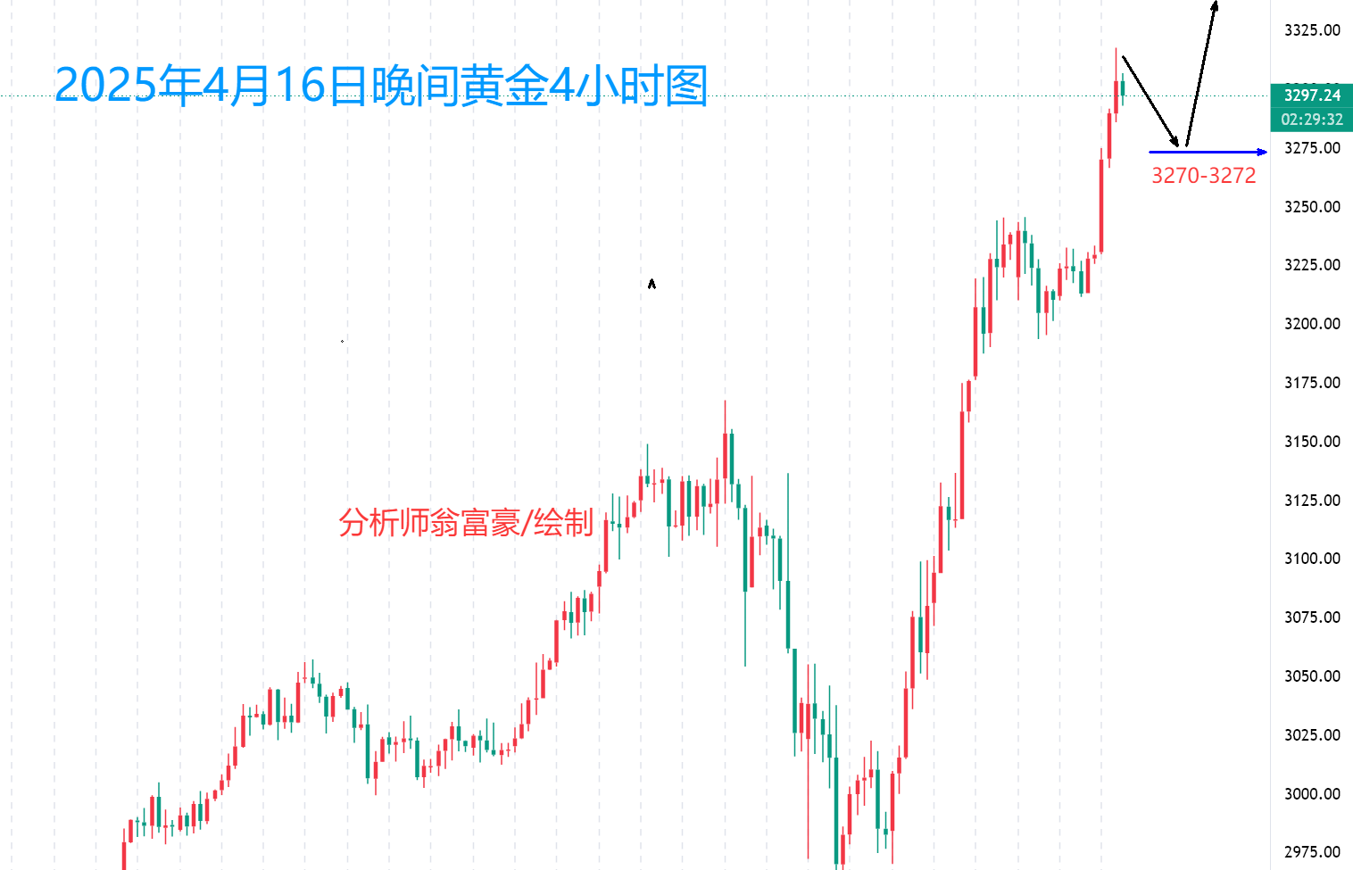 周四(4月17日)亚市早盘,现货黄金小幅冲高,一度刷新历史高点至3357美元附近。金价周三大涨逾100美元,升破3300关口,最高触及3342美元,涨幅约3.52%,国际贸易紧张局势升级,促使投资者转向避险资产,美联储主席承认经济增长放缓,美股、美元和美债收益率大跌,也给金价提供上涨动能。 当前黄金市场走势极为强劲,然而我们仍需时刻警惕黄金多头获利了结的情况。一旦多头量能得以释放,在看多的同时,务必关注黄金价格回落的可能性。除非市场当时上涨力度极为强劲,否则切勿轻易追高做多。我们应耐心等待价格回落带来进场的机会。至于黄金多头的强劲态势还能持续多久,由于“上涨不言顶”,这确实难以预测。鉴于目前