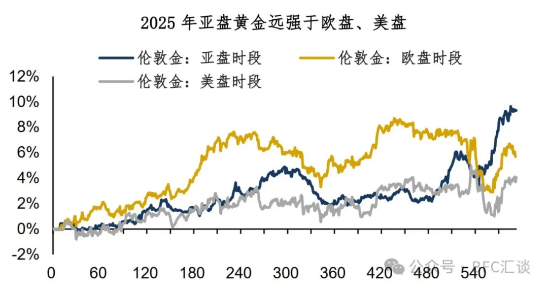 在前期分享黄金为何会频频暴涨中,我们分享了2025年黄金市场的新现象——亚盘黄金远强于欧盘、美盘。今天我们来聊聊亚洲黄金市场。 亚盘黄金为什么这么强? 央行购金当然是重要因素(前期有多篇文章探讨)。除了央行购金,2025年的亚盘黄金市场还有一大变化——散户预期明显起来了。 国内黄金ETF市场说明了很多问题。截至4月中旬,国内14只黄金ETF规模合计达到1300亿元,同比增长160%。按国内金价(AU9999)折算,今年以来国内黄金ETF新增持仓58.4吨,已超过去年全年的增持量。很显然,散户资金正在加速流入黄金市场。 根据世界黄金业协会的3月ETF月报,国内最大的黄金ETF(华安)在全球排名