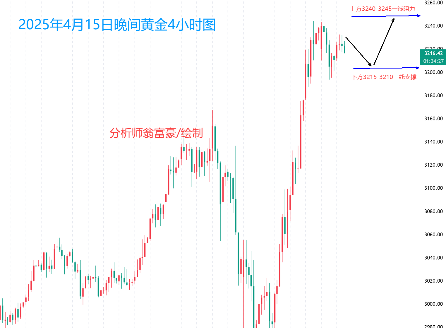 身处世界经济大漩涡的你,是否还在疑惑:无论行情暴涨、暴跌、单边还是震荡,自己总是抓不住?是否恼怒过自己一买就跌,一跌就割,一割就涨,一涨就追,一追又套,一套再割,感觉经济市场就是和自己过不去,对着干?是否懊恼自己一次又一次的错过风口,损多盈少?究其原因,无非是个人对时机和趋势的把控不到位。何为趋势?趋势就是市场运动的方向,是个既简单却又很深刻的话题:简单到全世界都知道趋势导向,深刻到即使每个人都知道顺势而为,但并不是每个人都能抓住趋势,这其实是市场经济使然,市场最终形成二八定律。 黄金行情分析: 周二4月15日)现货黄金基本持稳上涨,黄金目前位于3226美元附近。美国彭博社称,黄金攀升至纪录