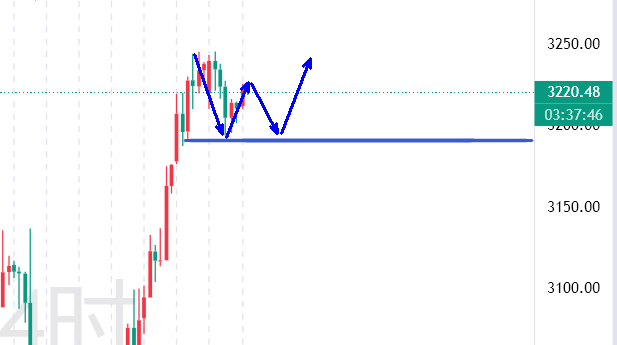 高晓峰:4.15日内黄金最新策略分析及精准指导 黄金市场延续强势格局,昨日价格稳守3200关键支撑位,测试前期高点3245后小幅回落,日线录得三连阳后仅收单阴,整体多头趋势未改。历史走势表明,强势行情中突破前高往往意味着趋势延续,而非阻力显现,二次冲高概率较高。 目前需重点关注3210-3200区域支撑有效性,该位置既是多空分水岭,也是短期回调的做多机会点。技术面看,亚欧盘上行节奏与美盘回撤修正构成良性调整,符合"急涨缓调"的强势特征。操作上建议维持多头思路,午后重点关注3200附近支撑,若价格回踩不破可顺势跟进多单,目标看向3245-3250区域。 黄金建议:回踩3210-3205附近多
