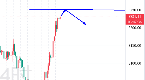 黄金再创历史新高成功站上3200!短短两日涨幅高达200美金 ,主要还是消息面因素推动,受关税政策影响,避险情绪升温导致黄金一涨再涨。昨日突破历史新高,顶在哪里谁也不知道,只能以每波上涨幅度来初步判断风险区域和压力位,顺势看多不是盲目高位追多,一定要注意风险控制,强势上升过程中也有回调,谨防被洗掉了。 今日黄金走的就很有意思,早间循环上升强势站上3200,午后在3220一线承压回调,基本和昨日的走势一样,同样的时间点,同样的行情,你抓住了吗? 比较有意思的是午后欧盘这一波上升,首先回调至3204这里上涨看似很强,结果在3218一线出现急跌,价格下探3187再慢慢上来