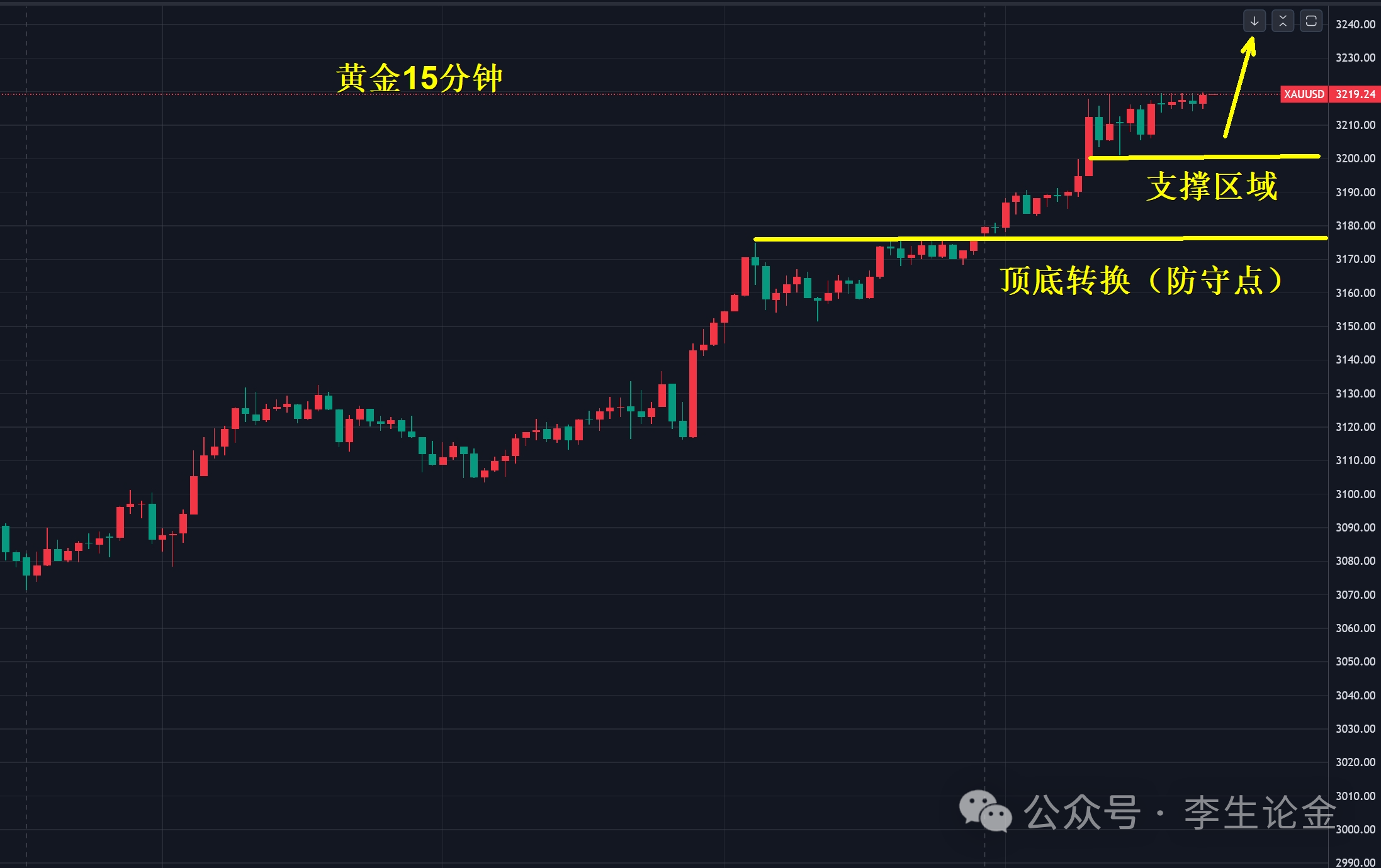 黄金再度暴涨,早间最高触及到了3220附近位置,继续不断的刷新着历史新高,价格好像是虚无缥缈的存在,时间和空间上已经阻止不了多头的上涨趋势,目前多头已经处于疯狂态势,但是越是这样的态势,我们越要冷静,行情在绝望中诞生,在犹豫中上涨,在疯狂中下跌,后期的趋势也不是我们所能掌控的,我们还是维持于原有的操作计划即可,日内开盘3175后,早间再度上冲于3220附近后止步,涨幅达45美金左右,于午后开始回撤最低3187附近止步,大幅度的来回波动,虽然有所回撤,但还是处于多头的趋势。如果你目前黄金操作不理想,希望田浩洋能让你的投资少走弯路,欢迎前来沟通交流! 早间上冲的行情,需要欧盘来横盘消化后仍有可能