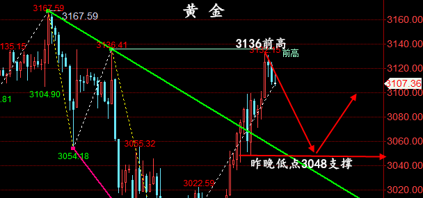 黄金分析策略: 中美贸易战加深和美元再次下跌支撑金价。黄金买家期待美国CPI数据作为下一个交易推动力。美国总统特朗普周三表示,将在90天内对大多数国家实行10%的较低关税税率,但将对中国的税率提高到125%,立即生效。日内将可重点关注美国通胀指标3月CPI数据,以及美国至4月5日当周初请失业金人数(万人)等数据。黄金周三受暂停关税影响大涨,当天最低2970,最高到达3100,日线大阳收于3082,又是上涨超百美金!黄金日线收大阳线,基本收复前期失地。1小时周期短线上升结构有完成的可能,晚间可能有幅度较大的回调。重点关注CPI消息面,下方关注3087和3047,上方则看3136的破位情况,上破