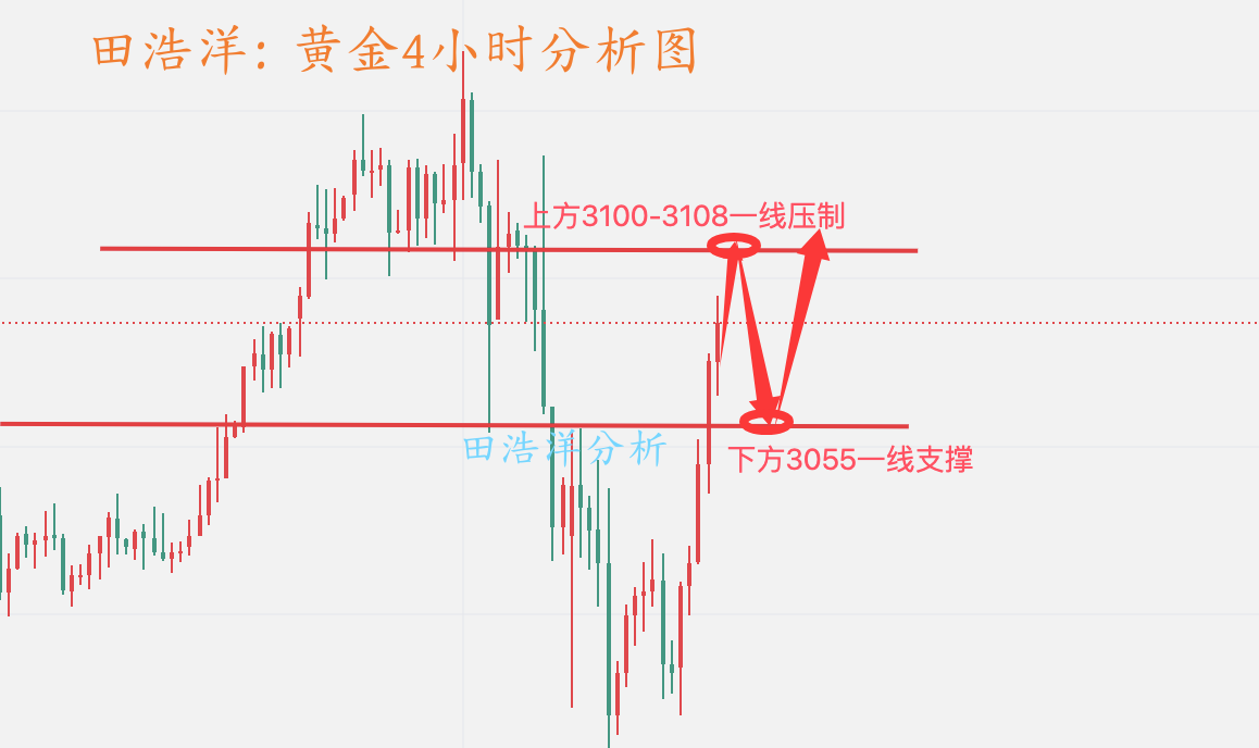 昨天黄金受消息面的影响,昨日上午最低触及2970一线,最高触及3099附近收盘,多头大幅度反转,涨幅达130美金,而今早间再度强势上行,早间最低3071一线,目前最高于3132附近,涨幅达61美金,近期内的波动也是让人瞠目结舌,毛骨悚然,大幅度的来回波动也是瞬间之事,虽然近期走势我们难以把控,但是我们能做好风险控制,轻仓的尝试性去做单,不要抱有任何的侥幸心理,凌晨我们给了3055一线的多单完美进场获利,相信关注我的朋友凌晨看得到,黄金多头再次崛起,回踩择机再做多,如果你目前黄金操作不理想,希望田浩洋能让你的投资少走弯路,欢迎前来沟通交流! 从4小时分析来看,晚间下方支撑关注3088-96附近