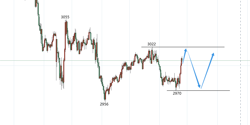 截止至2025年04月09日亚盘时段,虽然上周五公布的非农数据一度让国际黄金价格跌到了3000大关上方,不过随着全球经济衰退迹象的愈发明显,以及美联储降息预期的再次升温,限制了黄金进一步回撤的空间。在美国总统特朗普对等关税政策宣布后,目前贸易紧张局势持续升级,这使得美元上涨的动能不足,进而对非收益资产黄金形成支撑,而且全球央行在不确定性因素如此密集的情况下,也选择不断加大黄金的储备配置。 金价继续围绕3000关口徘徊 现货黄金窄幅震荡为连续三个交易日下跌,盘中最低曾触及2956.67美元/盎司,在美国全面征收关税引发全球经济衰退的担忧之后,投资者转而将美元作为避风港。不过,鉴于经济形