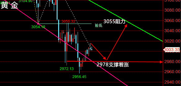 晚间黄金分析策略: 周二(4月8日)欧市盘中,现货黄金继续维持上涨走势,目前金价暂报3007.29美元/盎司,涨幅0.86%。市场几乎一致预期美联储将在6月恢复宽松货币政策。近期特朗普对亚洲国家、欧元区等多方实施新一轮关税,使得高通胀与经济放缓的“滞胀”风险再次抬头。从 MACD 指标来看,DIFF 线和 DEA 线在零轴上方死叉后,绿柱逐渐放大,但目前绿柱有缩短的迹象,显示空头力量在经过前期的释放后有所减弱 。黄金日线收带长上影的小阴线,价格已到达重要支撑位2056一线。1小时周期下跌浪形可能已经完成,下跌明显放缓;晚间大概率反弹为主。短线可关注下方2978美元一线的支撑,上方关注3056