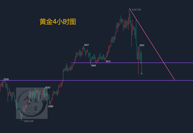 黄金分析: 黄金市场连续两日跌幅超100美金,行情转空了吗?老郑个人认为,黄金转空下跌只是暂时的,大方向还是多头不变; 大家可以想象:目前关税政策落地,中国加征34%的关税反制措施马上出台,紧接着三大指数暴跌,中国外贸占比很大,美国股市占比很重,这只是金融博弈的开始。全球经济复苏难上加难,货币政策和金融博弈还有重头戏。 本交易日开盘后,黄金市场价格再次下挫,一度跌至2973位置,随后大幅反弹,最高触及3055位置,波幅达80余美元,延续了上周以来波幅逐渐加大的趋势。经早盘大幅探底回升,市场大概率已破底见底,因此切勿强势抢空,早间下跌行情通常连续性差的特点。 日线上今天是进入修正行情的第三个交