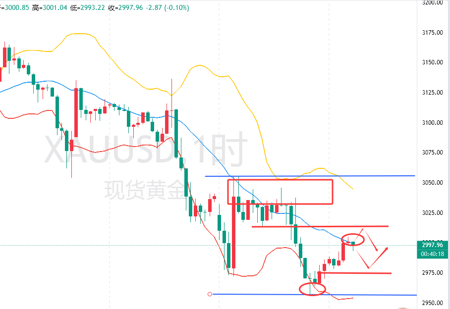 近期,市场受多种因素影响,行情波动异常剧烈。在此,特别提醒大家,务必做好风险控制和仓位管理,合理规划交易,只有确保在市场中长久立足,才能获取持续收益,切忌被市场的大幅涨跌左右决策。尽管当下市场涨跌空间较大,但建议大家尽量把握关键点位,赚取自己能力范围内的利润。 以周一黄金市场为例,开盘后金价大幅下跌至2970,随后迅速反转,大幅上涨至3055,形成双顶形态。然而,美盘时段金价又急剧下跌,最低至2956,市场呈现出极弱的下行态势。可见,尽管市场波动幅度大,但交易难度也相应增加。鉴于当前市场正处于中期调整阶段,建议投资者以短线交易为主。 近期,国际黄金市场有两个核心问题值得探讨:一是当前黄金市场