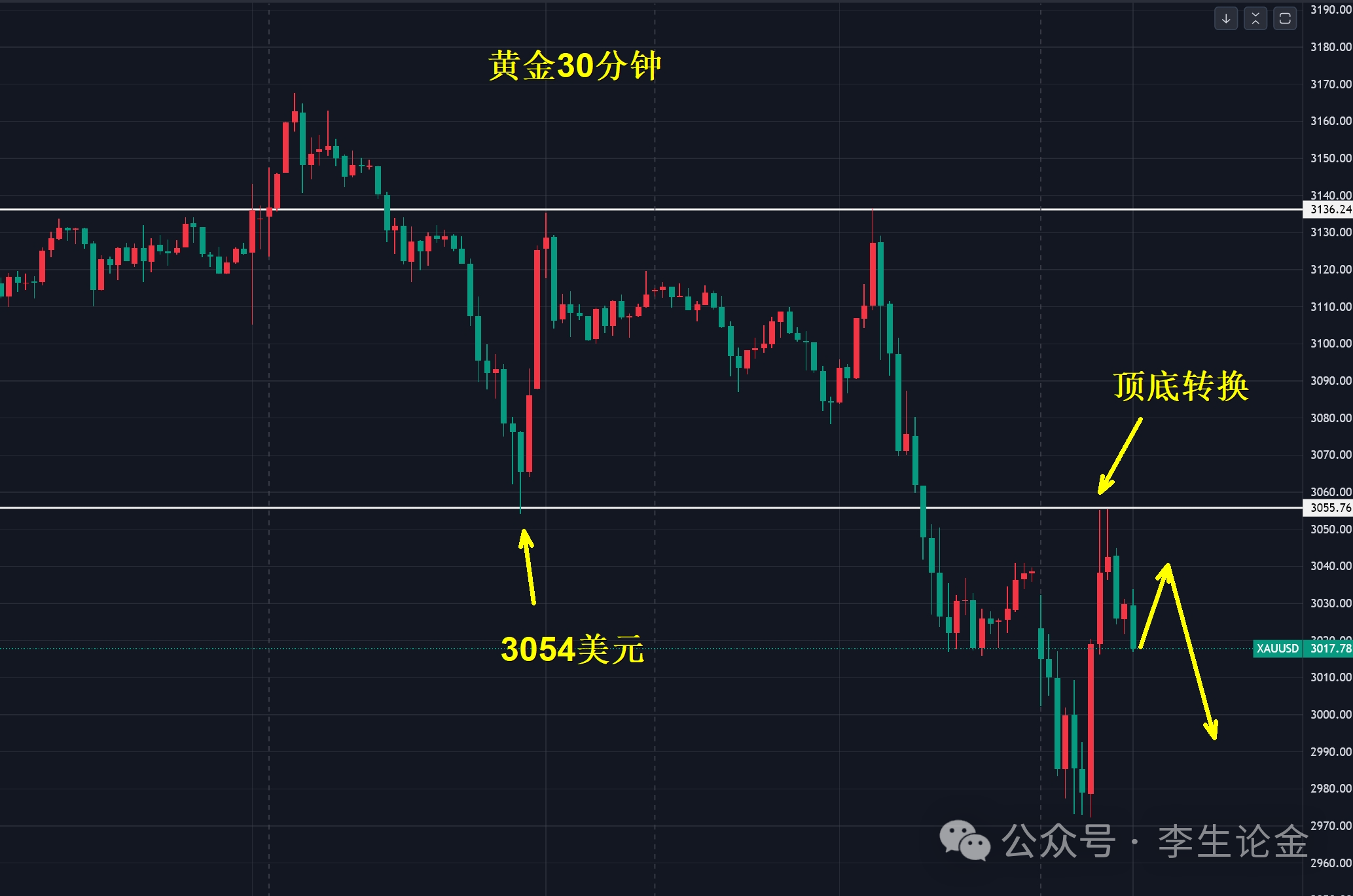 周一由于央行强劲的需求和美联储提前降息的潜力,黄金价格保持稳定,但由于一些投资者抛售黄金以弥补其他交易的损失,涨幅受到限制。 截至发稿,现货黄金下跌0.35%,至3025美元附近,此前盘中早些时候曾触及2,971.09美元的低点,日内波动幅度超过80美元。 今天黄金操作回顾! 第一单: 早盘通知学员们在3053附近进场空单,顺利止盈在3020下方,小小收获这波趋势利润! 第二单: 刚刚通知学员们在3013附近进场多单,顺利涨幅至3026上方,已经止盈在3024附近! 第三单: 下午全网通知了3045附近做空看回撤,晚间最低跌至3014一线,直接止盈离场了! 对于晚间黄金走势的看法 ! 最近的