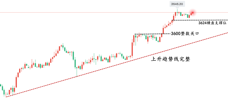 黄金自昨日周一开盘就表现出了比较明显的多头动能,开盘回踩就显现出冲击3600一线的势头,欧盘黄金成功站稳了3600一线上方,截止美盘金价突破3620一线,凌晨最高触及3646.3一线,今天周二开盘黄金震荡下行,有对技术面回踩修复的迹象,虽然大趋势依旧看多,但是不能排除短期技术面回踩调整的情况,本人田浩洋认为近期连阳的崛起目前技术面需要进行一定的调整需求,所以我们不要过分看涨黄金,一定要警惕技术面的回踩需求。如果你目前操作不理想,希望田浩洋能让你的投资少走弯路,欢迎前来沟通交流! 从4小时黄金走势来看,目前下方短期支撑关注3610一线关口,重点关注3575-83一线支撑,此位置也是短期多头强势