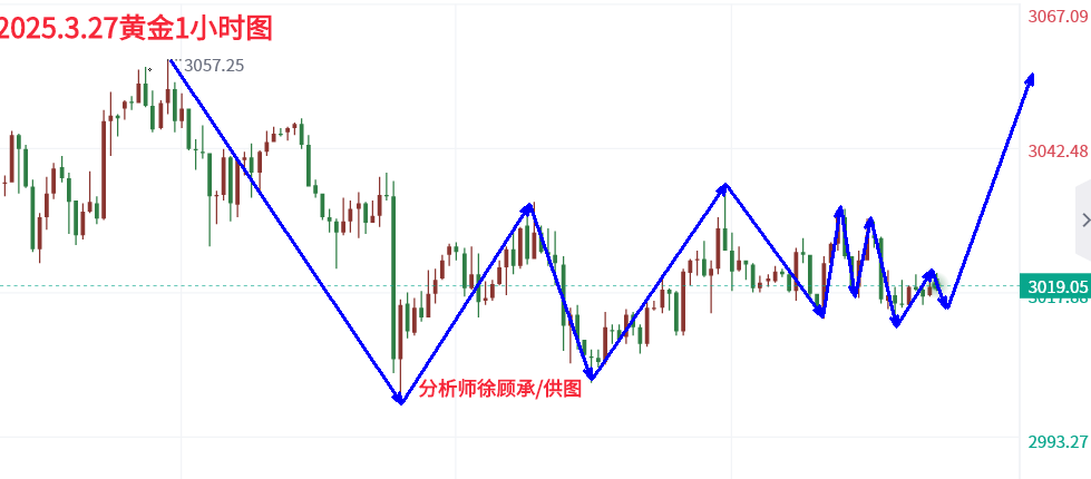 昨日黄金市场高位震荡,收出阴K十字星,表明市场情绪谨慎。早盘与欧盘均呈现倒V形态,直至美盘才打破僵局,价格自3030跌至3012后尾盘小幅回升,最终收盘于3018。 黄金从技术形态看,黄金已步入上行通道,1小时均线多头趋势明显。自3月21日突破3000大关以来,尽管市场震荡不断,但企稳位置逐次抬高,显示上行动力增强。预计周四周五黄金市场有望继续上涨。目前上方阻力位3036-3040,下方支撑位3014-3009。今日操作上徐顾承建议回调做多为主。 操作策略1:建议回调至3018-3013轻仓多,损3005,目标看3035-3040破位看3055争夺。 对黄金/原油/指数/外汇投资感觉不顺利,