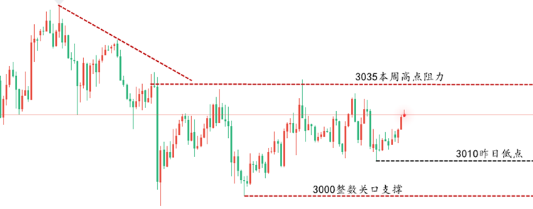美元方面,尽管全球经济形势不佳,但美元作为全球顶级避险货币的地位依然稳固,难以撼动。美股回调也被视为短期调整,而非长期趋势反转。在此背景下,黄金作为避险资产的吸引力依然强劲。黄金与美元的关系并非一成不变,两者间的波动关系复杂且多变。 今日黄金市场经历多次波动,早间自3027价位下探至3013后迅速反弹至3032高位,欧盘时段又自3032跌至3017,随后行情又回升至3025附近。整体来看黄金价格仍围绕周一的3035-3013区间震荡。当前黄金上方阻力位于3032-3035,下方支撑则在3017-3013。晚间操作建议以反弹做空为主。 操作策略1:建议反弹至3029-3035空,损3044,目