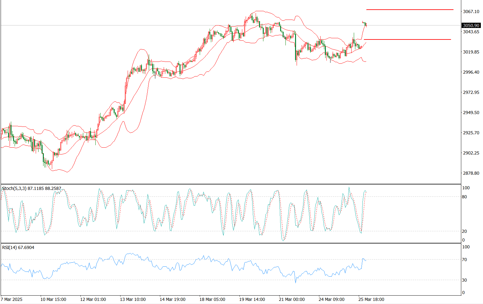截止2025年03月26日,受到上周美联储释放出降息信号的影响下,国际黄金价格仍然维持在3000大关的上方,不过由于特朗普的关税政策稍微降低了市场风险,因此某程度上削弱了黄金的避险支撑。然而,中东局势依然严峻,且俄乌方面也尚未达成停战协议,因此对于金价来说还是具备着极强的支撑,不过本周需要重点关注消费者信心数据及核心PCE通胀指标的公布情况。 黄金维持高位震荡,静待新线索 现货黄金窄幅震荡,美元触及逾两周最高,促使更多黄金多头获利了结,而且投资者就美国总统特朗普在对贸易伙伴征收关税问题上更为谨慎的立场进行评估。 特朗普上周五暗示,对于将于4月2日生效的对等关税将有一定的灵活性,预
