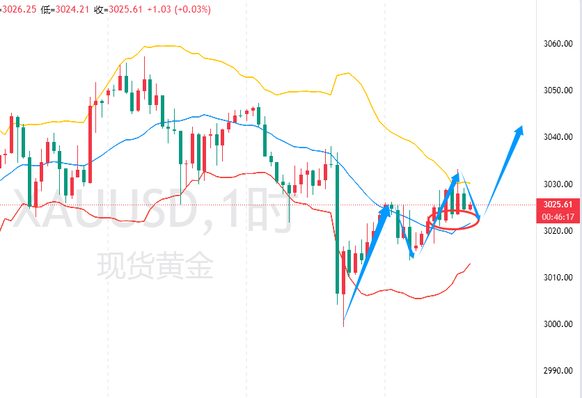 投资的路很漫长,作为投资者,要保持好的心态,学会坦然面对。市场上技术与讯息常常是充满矛盾的,少说话多倾听。偶尔一次失误,出现大的亏损情况下,不要心急,心态一定要平稳,千万不能一时上头急于搬回亏损,从而又一次盲目的进场去厮杀,这样结局定会完败。只要你不是爆仓,只要还有资本都可以定下心等待时机,等待最佳时机去入场夺回属于自己失去的土地。这个市场没有豪气,只有细心、计算、耐心!孙天翊语录:(机会是留给有准备的人,一次正确的选择大于百倍努力, 你相信老师,我给你一个满意收益,你刚好需要,我刚好专业)! 黄金实时行情分析: 周一早盘黄金价格高开触及3026一线回落,日内思路就以此点位来判断强弱。盘面上