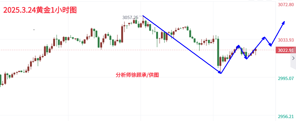 黄金在亚盘时段保持平稳,目前在3022美元附近震荡,接近上周四的历史高点。此前两日下跌后,金价企稳,反映市场对经济与地缘风险的避险需求未减。上周,金价累计上涨1.3%,年内涨幅达15%。特朗普****计划推出的对等关税政策力度可能低于预期。白宫内部人士透露,部分国家或被排除在关税名单外,且暂无针对特定行业的贸易壁垒计划。这一消息缓解了市场对全球贸易摩擦升级的担忧,限制了金价的下行压力。 黄金目前依然只是回调,不是见顶,今日的关键点在于,是继续回调,还是再度重回上涨?上周五晚间跌破3020之后加速下跌至3000附近,但随后凌晨时段持续震荡反弹,最终收于3020上方,形成探底回升走势。这种情况下