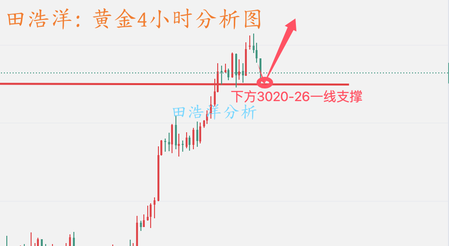 黄金今天早盘快速冲高,我们就提示黄金注意回踩调整,不要高位追多,黄金最高触及3057附近滞涨,开启回落调整之路,我们实盘也是给了3044附近做多,目标3053-55一线止盈,下午我们实盘在3045一线做多,在3051一线获利出局,黄金小时线高位回落调整,现在美盘前我们3026附近多单进场目标看3035-40一线,黄金小时线可能呈现头肩顶的雏形。还是那句话,黄金高位不要追多,回踩找机会做多,操作上以回踩做多为主,如果你目前黄金操作不理想,希望田浩洋能让你的投资少走弯路,欢迎前来沟通交流! 从4小时分析来看,下方关注3020-3025一线短期支撑,重点关注3000-05一线重要支撑,回踩不破继续