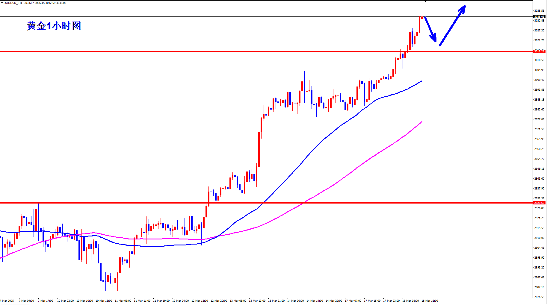 周一,在经济数据喜忧参半,特朗普和俄罗斯总统普京旨在结束俄乌冲突的会谈之前,华尔街股市收盘上涨, 黄金价格上涨,徘徊在上周首次突破的3030美元左右。预计金价会出现一些盘整……目前,在美联储做出决定之前,市场处于‘观望’状态。 昨日黄金操作回顾 第一单早盘3002多单,上午止盈在3015一线! 第二单晚间3037空单,止盈在3028-26一线! 第三单晚间3035空单,止盈3026一线! 对于今天黄金走势的看法 黄金方面,昨日再度大阳上升,能否开启新的上升?目前市场上的形式来看,2025极大可能上是黄金元年,换句话说,彻底的疯狂。 3038,这是昨晚的高点,也是今日早间高点,而慢涨行情中,最