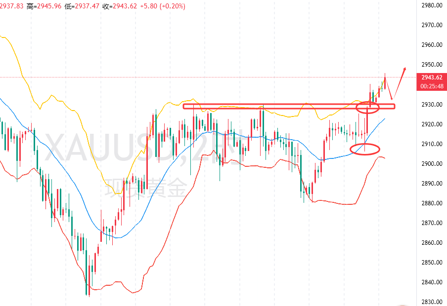 周四,现货黄金于近两周高位呈现窄幅震荡态势,当前交投于2938美元附近。【咨询方式见文章/末尾,可以看到文承凯/咨询/方式】 鉴于美国2月份消费价格增长有所放缓,市场预期美联储有望在6月恢复降息。并且在特朗普实施金属关税后,欧洲采取了行动,避险需求再度为金价注入上涨动力。受此影响,金价周三上涨近20美元,盘中最高触及2940美元,单日涨幅达60美元,略低于历史高点2956美元,最终收报2933美元。周四,投资者关注的下一组数据为美国生产者价格指数(PPI)以及上周申请失业救济人数数据。 从日线级别来看,黄金在周一下跌,打破了上周尾的震荡区间,呈现出较为显著的下行走势。然而,市场走势瞬息万变,
