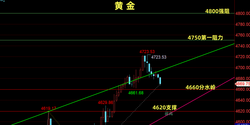 何小冰:突破了,别辜负,金价抓紧时机上涨 金价日线三连阳,都是相似的特色,一早一晚启动加速上涨,其他时间段基本偏向于修正调整,调整力度70-100美元幅度 今日周三早盘4661直接再破新高去到4724,同样是冲高回落,二次回踩4667, 现在再度确定支撑开始反弹拉升,时间点也来到午后欧盘前 以延续对待的话,时间点差不多了,也有回踩确定支撑的动作 接下来便是欧盘继续高歌猛进去破高,进一步释放多头的动能 往上看4730,其次多重支撑叠加的4768区域 现在,价格完成了三道突破: 第一是突破了三阶段的空间, 进入第二阶段的空间范围400-500美元幅度; 第二是四小时形态开口指引向上的方向 ,46