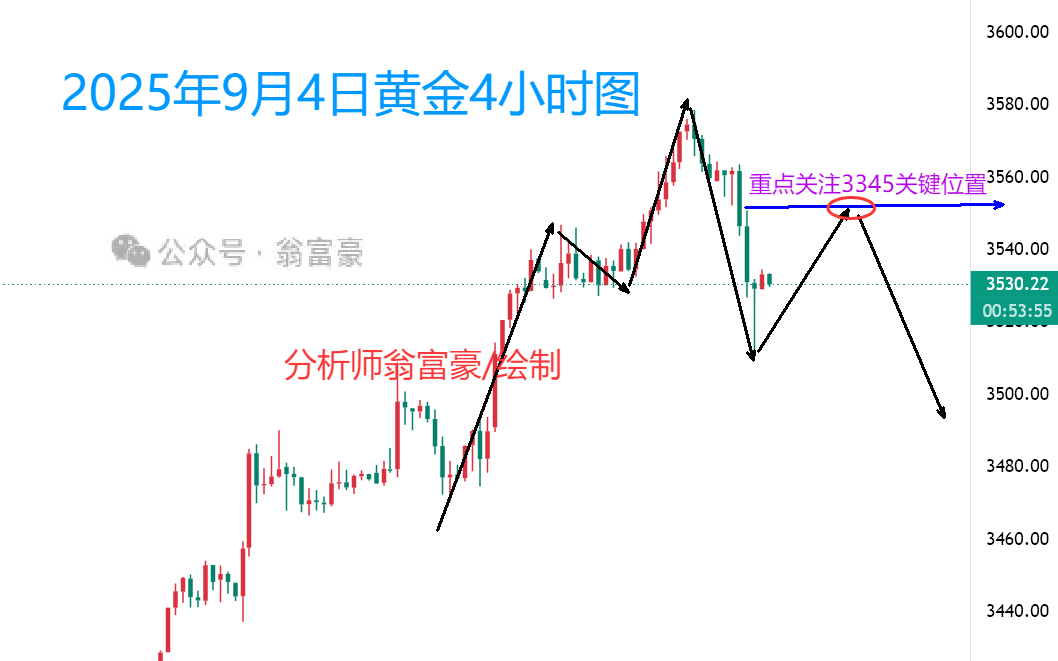 黄金早盘一路下跌,打破多头强势节奏,短期上行受阻并进入调整周期,大概率将转为震荡,后续等待大小非农数据提供新的行情刺激。技术面上,黄金1小时周期在冲高回落后连续下跌,直接跌破3545关键支撑位——若后续反弹无法重新站稳3545上方,1小时级别可能形成头肩顶结构,需格外警惕(当前黄金涨幅已大,变盘风险升高)。操作上,翁富豪建议短线反弹至3545承压时,可优先考虑逢高布局空单。 操作建议:黄金建议3545附近做空,止损在3552,目标看向3520-3500 文章没有太多华丽的语言与鸡汤,一直如此,我相信每一位读者缺乏的不是鸡汤,而是实实在在的分析与强大的理论,我是翁富豪老师,最后祝大家交易愉快。