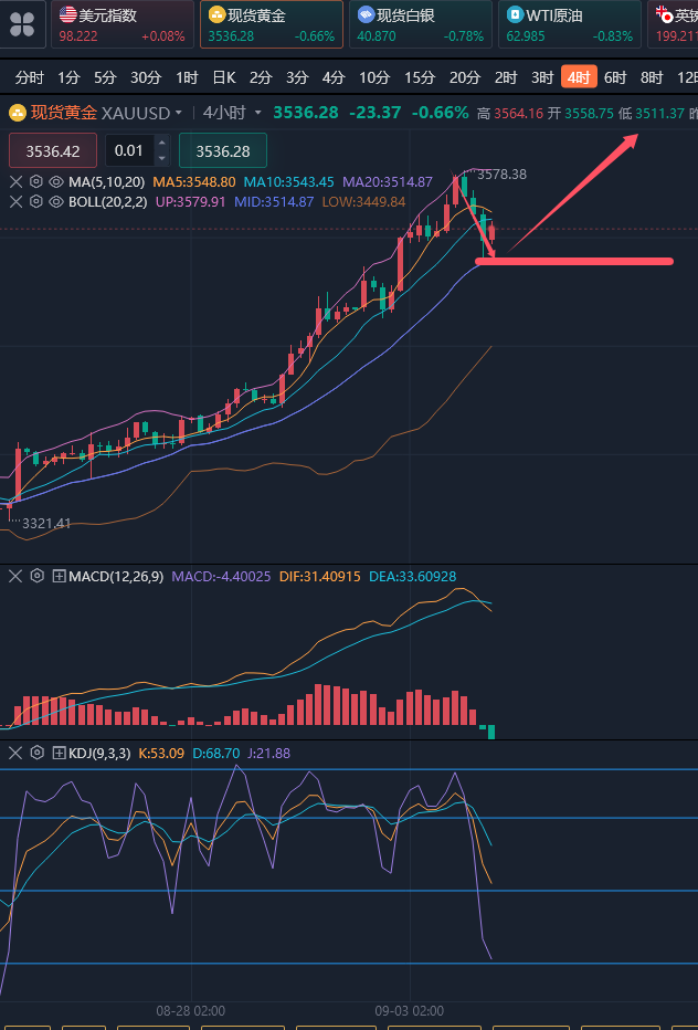 做交易我们要有“落袋为安”的心态,而不是一味盲目追求最大利润。我们能做的是要把握住自己能赚的那部分利润。我们在这个市场是来赚钱,而不是来扛单的。赚钱了,该出的就出;到止损点,该割的就要割。这样才能把风险降到最低。不怕做错单,就怕一根筋到底和裹足不前。大胆操作,谨慎控制,获利自然水到渠成。 ————————消息面 周四(9月4日)现货黄金在刷新历史高位之后进入回撤修复阶段,日内黄金价格一度跳水近50美元,下探3510美元未破,随后金价短线大幅反弹逾15美元重新站上3530美元上方,本交易日将公布ADP就业变化报告和服务业PMI数据,预计将再度引发市场大行情。 原油价格小幅下滑,目前交投于63美