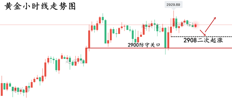本周即将公布的大非农数据将成为市场关注的焦点,结合近期其他指标来看,经济前景持谨慎态度,周五如果数据表现弱势,金价受到多重因素影响,预计会再次反弹,反之则下跌。 周四欧市,现货黄金短线快速下跌,金价自2923美元/盎司附近水平回落,最低跌至2891美元/盎司,创下日内低点。在积极的风险基调下,金价多头似乎不太情愿;不过,贸易战忧虑将限制金价跌幅。此外,美联储降息押注以及美元走软也支持金价。而当前,黄金在2910附近晃荡! 目前来看,黄金今天走势稍显弱势,并没有延续昨天的探底回升,由于当前位置临近前期高点强压,加上当前避险情绪稍稍缓和,再度破位前高冲击的力度并不强烈,所以我们能够看到黄金一直围