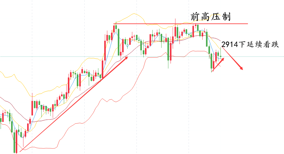 黄金实时行情分析:近期黄金价格的涨跌节奏切换的很快,上下30个点极其正常,今天周四预计宽幅震荡还会延续。另一方面就是美元指数本周暴跌至104关口,这也是金价多次半夜反弹的主要因素,表明市场买盘强劲。今日思路就以昨日低点2894定多空对待。今日阻力方面关注1小时中轨2916和1小时布林带上轨2930两个节点,向上突破看4小时上轨2937和周线上轨2945两个节点。 支撑方面留意4小时SAR指标延伸点2894,向下突破看前期多次提及的2876位置,更下方参考4小时下轨2870和日线下轨2858一线。综合来看本周黄金周线布林带上轨从昨天2950下轨到2945,而日线布林带下轨从周初2850上移到目