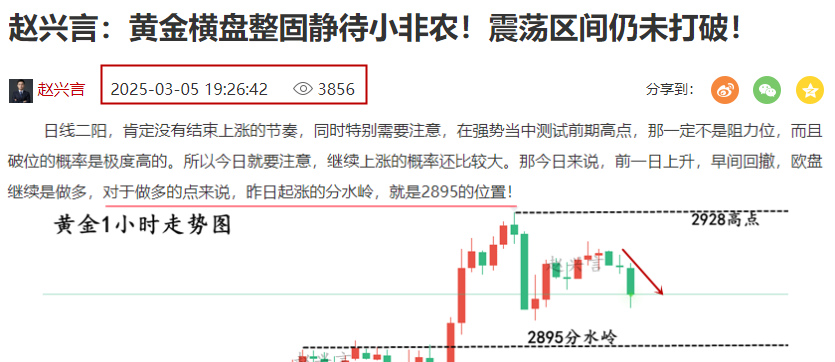 周三,特朗普本周宣布的关税存在不确定性,导致美元大跌,黄金价格小幅上扬。投资者等待本周晚些时候美国就业数据公布,以进一步了解美联储的货币政策。 美国ADP就业人数(“小非农”)发布后出现一波V形走势,最低跌至2894一线,截止夜间涨幅至2929一线。 昨日黄金操作回顾! 第一单早盘通知学员们在2909一线做空先看回撤进场多,可惜先涨至2914.7一线扫损了空单就跌下去了,遗憾第一单止损! 第二单2894一线做多,反弹至2906上方获利离场,最高涨至2929一线!也和我们早间预期的策略思路一模一样,点位上思路上还是比较精准的! 对于今天黄金走势的一些看法! 昨晚小非农利多,黄金果然走出了一个探