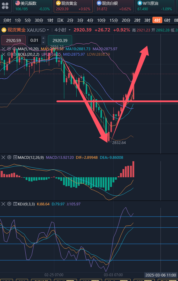 懂趋势是投资的核心,是投资的重点,更是投资的难点。没有数年的投资感悟和大量阅读和思考,是很难懂得每一波趋势的价值。如何才能懂得每一波趋势呢,给每一笔投资进行恰当合理的规划,除了勤奋阅读和投入大量的时间去感悟,没有其他更好的办法,总而言之,大量的时间成本是少不了的。当然了,聪明的人可以拜师学习,用金钱成本为自己节约时间成本,站在前人的肩膀上去思考。 ————————消息面 周二(3月4日)现货黄金上涨,截至目前暂报2918美元/盎司,涨幅0.85%。由于全球关税战似乎不可避免,市场仍然厌恶风险。美国总统特朗普确认将于周二对加拿大和墨西哥征收25%的关税,同时他已经签署将中国关税提高到20%的命