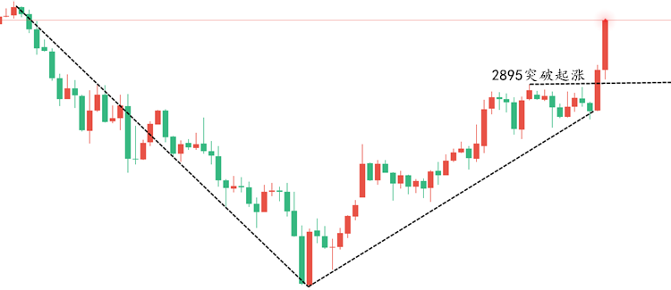 投资市场并不会简单的朝着预期的方向进行,通往成功的路都是曲折的,而一旦走反,则将会失去方向,进入了循环,行情也同样如此,趋势是一定的,但是绝对不会简单地朝着预定方向一直走,期间会出来曲折而动摇人的内心,这时候就需要好的心态来面对,不受短线的走势所影响,这就是前期我们一直坚定布局波段,都是成功获利的原因,守得初心,方得始终,投资市场需要定力,需要持之以恒的决心,然后再去收获利润。 黄金行情走势分析: 昨日黄金市场迎来大幅上涨行情,最终报收大阳线。金价强势突破上周五的开跌区间2880-2885美元,并且成功刺破上周四晚间的高点2895美元。此次黄金大涨,主要得益于美乌谈判破裂的消息持续发酵,以及