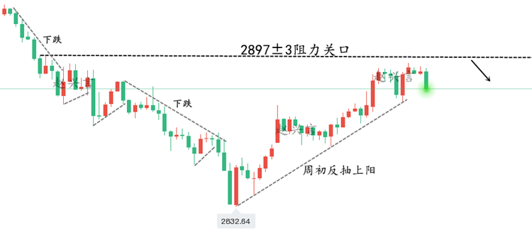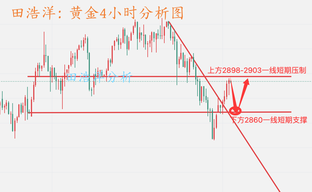 黄金昨天周一开盘后早盘最高触及2876一线后开始回踩,最低触及到了2860一线后震荡上行,晚间美盘后黄金再次触及2883一线后进行了小幅回踩至2873一线后进行震荡上行,截止凌晨收盘黄金成功站上了2890一线附近,目前来看黄金多头似乎有崛起之意,行情似乎得到了反转,但是大家千万不要被眼前的现象迷惑了,黄金虽然反弹了,但是也要注意上方的压力比较大,回踩调整也是技术面所需要的,如果你目前黄金操作不理想,希望田浩洋能让你的投资少走弯路,欢迎前来沟通交流! 从4小时分析来看,上方短线阻力2897-2903一线附近,日内反抽依托此位置继续先空下看回落,下方低点支撑关注昨天反弹起点2860附近,整体依托