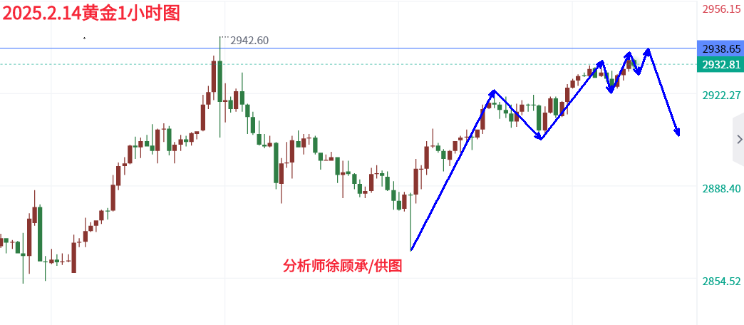 基本面:关税机关枪扫射 避险情绪起 特朗普(Trump,英文也有“王牌”的意思)周四公布了对等关税计划,称正在研究对每个对美国进口商品征收关税的国家征收对等关税的路线图。这是对美国的朋友和敌人发起的新一轮攻势,加剧了全球贸易战的可能性,避险情绪升温。 此外,美国12月份的PPI报告显示的价格涨幅低于预期,表明去年年底前美国的通胀压力有所缓解,宽松预期重新升温,美债收益率大幅下行,美元指数也出现大幅下跌,提振金价。 消息面上都是利多因素,推动金价持续上行,重新回到短期高点2965附近。 技术面:短期或维持震荡 小时图看,金价在昨日全天维持震荡攀升,再次接