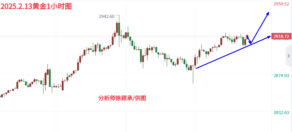今天2月13号周四,黄金昨日在CPI数据利空的影响下,走了探底回升重新站上2900, 长下影线最低触及2864一线,完成价格修正和技术指标的修复,趋势还是看多头。 日线形成单阴修正,不改变整体多头趋势,今日有望继续上升。 早间开盘就直接发力上涨,看强势多欧盘要有延续,至少不能回调幅度过大,过大就成震荡了。 今日黄金重点关注2907—2908一线支撑看多,分水岭2900,上方压力看2928—2929。欧盘走强晚间可以继续看多,如果欧盘压制横盘不涨,晚间就以震荡看待。 交易方面 ,黄金昨日午后至欧盘持续偏空整理,2881—2882低点多次试探,测试