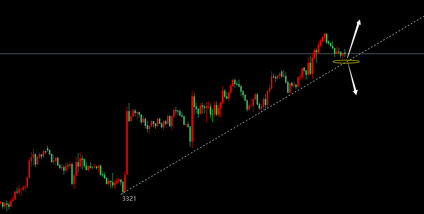 最后15美金,留给空头逃生的时间不多了,再扛下去就能等着挨巴掌! 三个多月的洗盘,凡是对牛市质疑的人最终将被甩下车,疯涨才刚刚开始!坐稳扶好。 自美联储主席在全球央行年会上放话9月降息,市场预期9月降息比例高达90%,大量资金涌入黄金市场推高金价。 真正的上涨,不会给没有勇气上车的人机会,月线连续四个月 上影线 只是“诱空”,见顶的行情不会长时间高位洗盘。 周末,我在《 黄金空头退场,准备投降! 》明确给出周一早间以3440-38美元作为支撑点继续上涨,今早最低3436美元拉到了3486美元附近,涨幅达到50美金。 久违了,不少朋友感叹好久没有这么大行情了,几个月的震荡都对牛市没有了期待,而