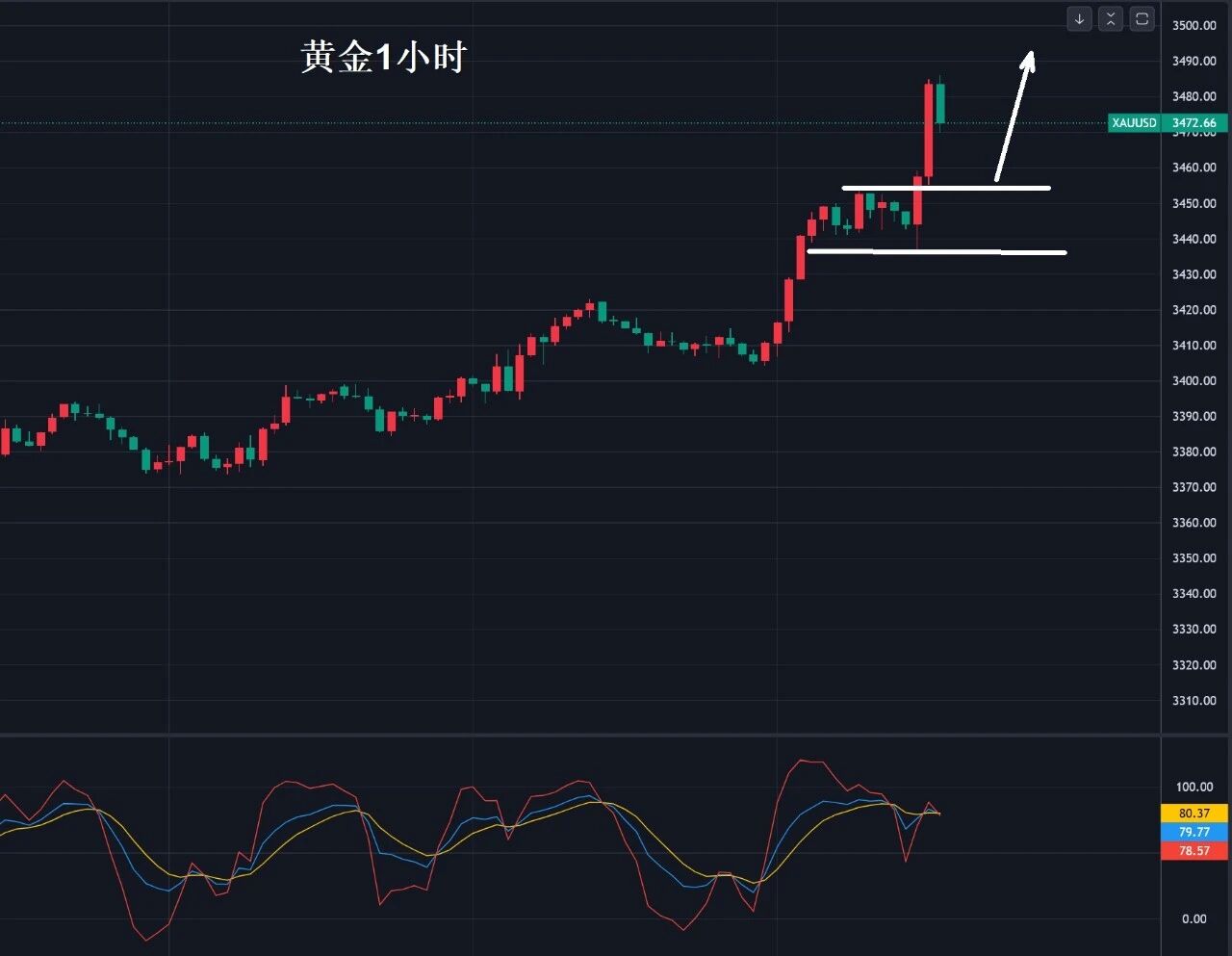 黄金多头已经准备启动了,财富新浪潮来袭,机遇与挑战并存,与其被动等待,不如主动出击,让我们穿透迷雾,看清趋势脉搏,精准卡位,抢占财富先机! ————————消息面 黄金成功摆脱夏季的低迷态势,价格强势上涨,周线与月线双双刷新历史最高收盘纪录。周一(9月1日)亚欧时段,现货黄金延续涨势,一度上涨逾1%至3489.78美元/盎司,刷新了4月22日以来高点,逼近历史高点3500关口附近关键位置。这一轮金价的强势上涨,并非偶然,而是多重因素共同作用的结果,其中最关键的就是市场对美联储降息预期的持续升温。 新的一周即将拉开帷幕,全球投资者的目光都聚焦于9月5日即将发布的美国8月非农就业报告。这份报告不