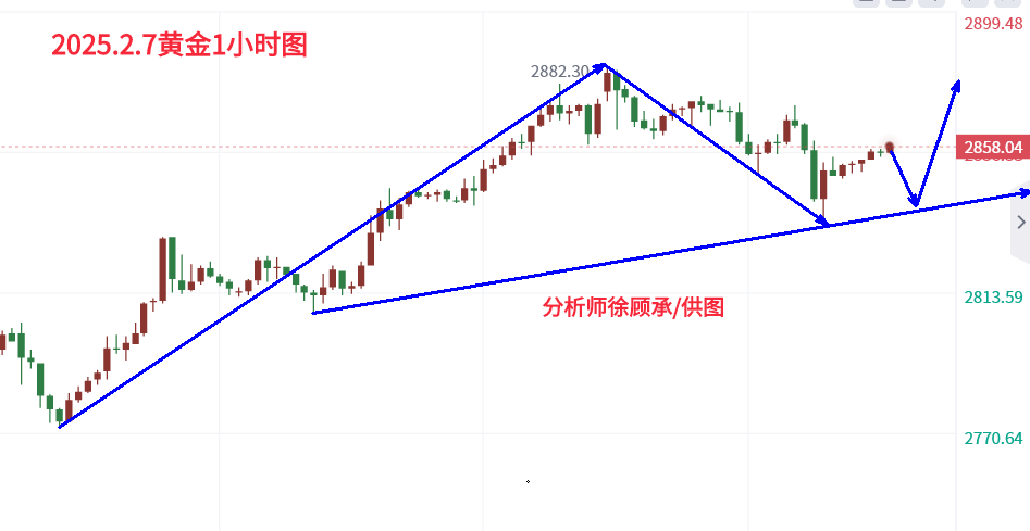 春节后的首个交易周,贵金属引来“开门红”行情,国际金价连续5个交易日上涨并刷新历史记录,伦敦金最高突破2880美元/盎司,COMEX黄金一度突破2900美元/盎司;境内黄金一天补齐了外盘春节期间的涨幅,上涨约4%。难道黄金多头的目标点位真的是3000美元/盎司? 晚间操作回顾 趋势上兴言是依托2850分防守点来进行布局多单的, 白盘两单全胜,晚间47多单遗憾止损40一线,随后黄金下跌至2834一线,兴言通知学员们在2837附近进场多单,博弈凌晨回升上涨,早上起来顺利止盈至2859一线 ,深夜最后一单也是再度让学员们抓取到20个点的利润! 黄金走势预测 日图上看,黄金长期上升的趋势线依然发挥着