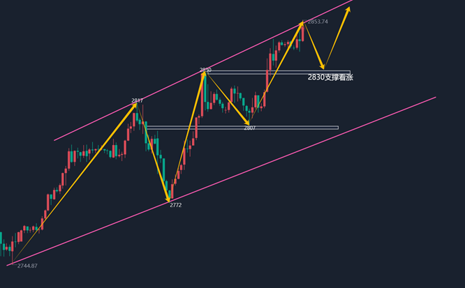 我们做交易都是基于假设,而假设是基于某种合理的交易逻辑,一旦发现自己的交易逻辑没有得到市场的认可,那就说明自己的假设错了,那就要不断的修正自己的假设并及时做出应对措施。 以下账户过年期间无交易,资金利润已全出,可观摩! 2.5黄金分析 金价周二再创历史新高,受投资者寻求避险资产推动,此前中国针对美国总统特朗普的关税措施采取了报复性关税措施。技术面黄金多头走势过于强劲,在当前连续新高不断的情况下任何回撤都是介入多单的机会,不过也要小心利好消散后的快速反转。 操作建议:回撤2830——2825一线做多,目标看2835——2840——2850附近 2.5原油分析 油价周二涨跌互现,受关税影响,且美