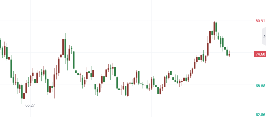 原油本周表现不佳,以阴线收盘,预示着下周市场可能继续偏空。从技术面看,75.8附近是原油的重要阻力位,如果无法突破,做空将成为下周的主流策略。下方74的支撑位看似稳固,但根据周线走势,这一支撑可能难以抵挡空头的强劲攻势。 一旦跌破74,原油价格可能会继续下滑至73附近,而在这个位置,投资者可以考虑逢低做多。当然,真正的强支撑位在71.5附近,这是我们需要密切关注的关键点位。 回顾昨日原油的日线走势,价格在74附近企稳后反弹,但最高仅触及75.2,随后回落,收出一根长上影线的阳线,显示出上方压力较大。 因此,对于周一的操作,徐顾承建议采取灵活的策略。如果价格接近昨日高点但未能突破,可以小止损做