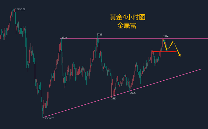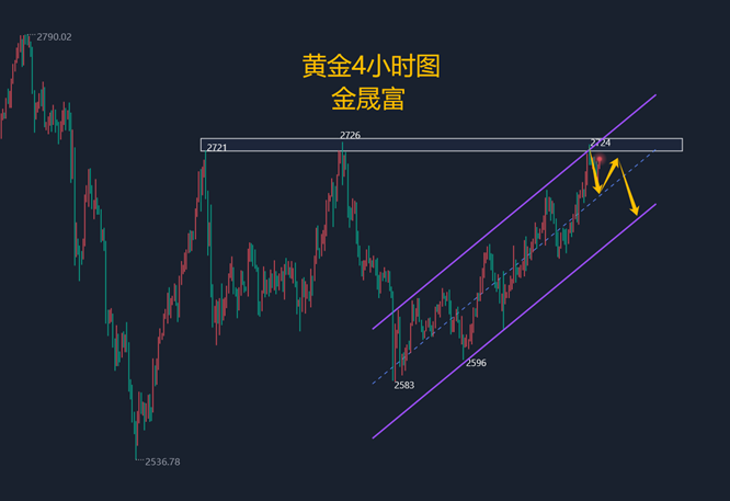 【黄金消息面分析】:周五(1月17日)亚洲时段,现货黄金窄幅震荡,目前交投于2713.55美元/盎司附近。金价周四升至一个多月高点,盘中最高曾触及2724.61美元/盎司,距离12月12日触及的逾两个月高点2726.05不远,收报2714.49美元/盎司,为连续第三个交易日上涨,因最新的美国经济数据进一步压低美债收益率,本周核心通胀数据疲软,增加了市场对美联储政策将更加鸽派的押注。 【黄金技术面分析】:黄金4小时图多头上升通道当中,依托2655低点形成的台阶上升通道,这也是昨日看多的理由。低点不破,多头不改,虽然过程缓慢。但整体保持在震荡上升当中。黄金1小时均线再次进入金叉向上形态,黄金价格