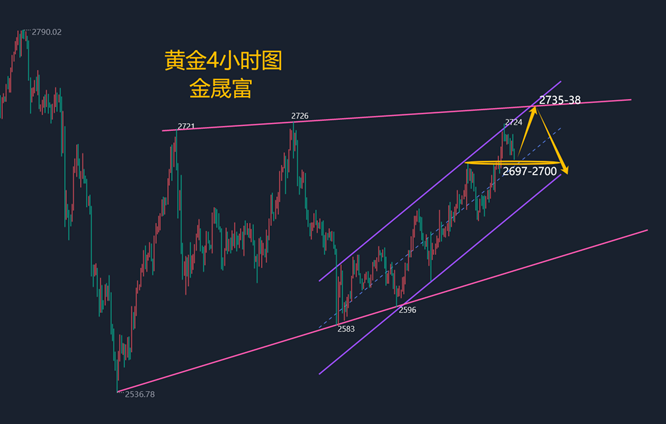 张津镭:黄金涨破2700,下周操作建议 昨日黄金走了一个偏弱震荡行情,和预期一样周五有不少多头获利出场,基本就是在区间内运行。给的2705区间多单也是在2715附近小赚10美金。不过区间太小,后续波动也不大。最终金价是收盘于2701美元,日线收于一根小阴线。 不过现在局势还是偏多无疑。首先下周一特朗普即将就任美国新一届总统,其广泛的贸易关税预计将进一步点燃通胀并引发贸易紧张,从而有可能增加黄金的避险吸引力。其次,近期不断疲软的美国经济数据进一步疲软让美联储降息的押注重燃,使金价一直偏向上涨态势。 因此,下周笔者依然看好涨势。只是周五收盘于2701位置,这个也是一个比较危险的点位,看周末有无意