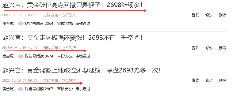 张津镭:美数据连续较差表现,黄金回调依然可以看多 昨日黄金继续走了一个大涨行情,亚盘开盘围绕2690上下震荡,欧盘小幅回落至2689美元一线,给的2690一线多单完美进场,随后金价一路高走,直接突破2700关口,最高是到了2724美元一线,多单亦是在2720一线止盈离场,大涨30美金。最终金价是收盘于2713美元,日线收于3连阳。 周五(1月17日)因最新的美国经济数据进一步压低美债收益率,本周核心通胀数据疲软,增加了市场对美联储政策将更加鸽派的押注。另外,初请失业金人数超过预期,因此这预示着劳动力市场有所减弱。因此黄金的吸引力重新增强。 可以说,现在黄金就是涨势,避险情绪支撑黄金,美国数据