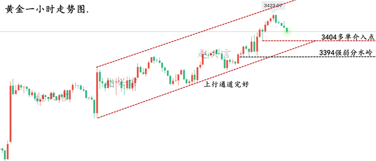 黄金凌晨表现强势,最高触及3423小幅回落收盘,日线周期三连阳涨破3409分水岭,注意目前上轨还没有向上发散开口,如果进一步向上短时间内还有空间,关注3440/3450区域,这才是关键的压制区域,不管如何,在降息背景下金价很难出现大跌,等待上破3500。 短线方面日内回踩修正继续多起来即可,关注顶底转换支撑3409以及上升回踩的0.618位置,触及分批多,最近欧盘都是反复震荡,美盘出现向上循环上升,注意把控这个节奏。 原油波动不大,短线仍是震荡行情,多空均可做,上方阻力65.30做空,止损66.10,看64.20,下方支撑63.60做多,止损62.80,目标看64.70。