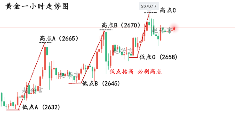 昨日黄金连续4天上涨,避险需求温和支撑了金价,抵消了美元走强和利率上升带来的下行压力。由于特朗普将于1月20日就职,他提出的关税措施可能会引发贸易战和通胀。在这种情况下,被视为通胀对冲工具的黄金可能会表现良好。 目前,投资者的注意力已转向将于美国东部时间周五上午08:30公布的美国非农就业数据,以进一步明确美联储的利率走向。 至于非农能否引爆今天的大行情?我们拭目以待! 黄金走势分析! 黄金,洗盘上升,日线继续破高,走了续涨,从节奏上来说,完全符合我们看多的预期。加之而昨日也有是美盘加速上升,虽说并不是干脆的上升,而是拉了两个来回,上去下来,继续上攻收盘,还是在测试多头,趋势上不属于极强,今