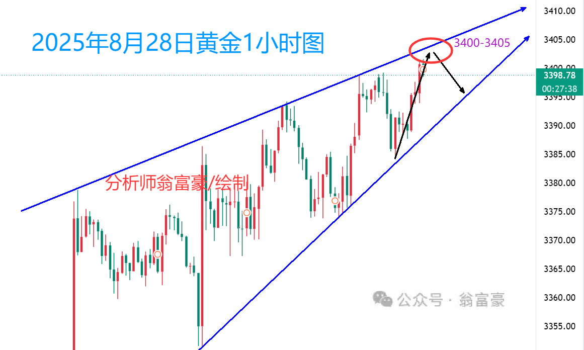 张津镭:金价蓄势待冲3400,晚间数据或引爆行情 昨日黄金走了一个震荡行情,亚盘开盘开始回落,回落至3370上方反弹,在反弹至3385进场空单,美盘也有小赚。震荡直至凌晨开始上扬,最高是到了3399美元一线,最终是收盘于3396美元,日线收于一根小阳线。 周四(8月28日)在美联储政策不确定性和地缘政治风险的双重影响下,呈现出相对稳定的态势,但潜藏的波动性不容小觑。尤其是美国总统特朗普试图解雇美联储理事库克一事,引发了市场对美联储独立性的担忧,这不仅推高了黄金的短期吸引力,还与即将公布的通胀数据交织成一张复杂的网,影响着全球金市的走向。 当前市场正密切关注晚间将公布的美国第二季度GDP修正值