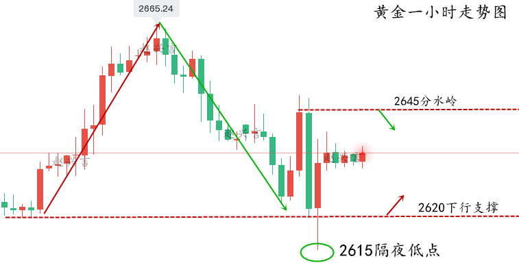 如盈财女:1.7黄金区间震荡不改,原油高位看空 黄金2024年线收官成功守住了2600大关,随后迎来了反弹回升至2665位置受阻。上个交易日上演过山车行情,多空在美盘时段加剧波动,要多刺激有多刺激,行情也给宁静的市场带来活跃度。,美盘冲击2650关口大幅回落,快速跌回2615附近,刷新日内低点,但最终还是重回2640关口,收复大部分跌幅。 从当前走势来看,日线处于低位震荡格局,隔日下探回升明确支撑力度。但黄金月线高位连阴回落,2720以“M”顶形态进一步明确顶部信号,只是2600大关依旧坚守,导致行情多空分歧比较大。本周是数据激情周,非农前可能都会维持震荡局面,需要等待数据的指引。今日重点关
