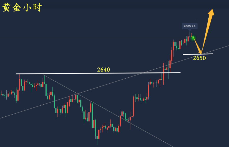 今天周五周线收官,节后黄金如期爆发大涨,和锦晟元旦分析保持一致。昨日日内强势上升,横盘直接发力大涨,短线多单没有机会,采取观望态度。晚间布局2637回踩多,点位精准给到顺利进场,2655目标位止盈,一单拿下18美金。由于十一点后到达2655,放弃回落空,落袋直接休息。 黄金是一个对技术面要求比较高的产品,在没有消息面的影响下,技术面可靠度很高,把握趋势,抓住波段,确定位置。交易不在频次多少,关键要看懂行情,知道怎么做,而不是像无头苍蝇乱撞。交易一方面要看位置,另一方面还要看时间,对的时间做对的单,时间不对,价格到了也不能做,这就是时间法则。 行情方面,今天黄金就比较简